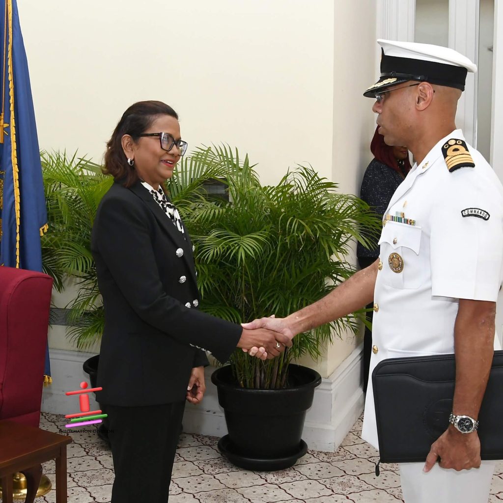 On Thursday October 16, 2025, Her Excellency Christine Carla Kangaloo O.R.T.T., President of the Republic of Trinidad and Tobago and Commander-in-Chief of the Armed Forces received a courtesy visit from the newly appointed Chief of Defence Staff (CDS) Commodore Don Polo at The President’s House.